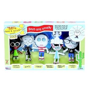 Product Description : The "Boys Are Smelly" boxed set of bendable and poseable "bendy" figures. From The Wacky World of David & Goliath, this collectible 6 piece set includes Bonita Styles, Eve L., Todd, Trendy Wendy, Jack the Nerd, and Goodbye Kitty. Figures are 3-6 inches tall. For ages 3 and up.Bonita is the most stylish girl in school. But when you star at her she always says "What you lookin' at sucka!" Eve L.: Evelyn Lebowitz, known to her friends as Eve L. Is a typical teenage girl who likes to keep to herself. trouble seems to follow her wherever she goes, but she swears she's not a troublemaker. Todd: Todd is just really smelly! So he represents all boys who are smelly...which is all boys! Trendy Wendy: Wendy is a normal girl who just happens to be trendy. She likes shopping, going to the mall with her friends and hanging out in her room. She does not like boys - why? Cuz they're smelly! Jack the Nerd: Jack is a nerd who just doesn't know it. Is that so wrong? He is afraid of everything! Mice, the dark and girls. Goodbye Kitty: Goodbye Kitty is just a cute little kitty who is always getting in trouble. She gets stuck in the blender, microwave ad even the toaster sometimes...but she never gets hurt!
