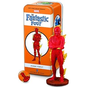 Product Description : From the ManufacturerAppearing in 1961, the Fantastic Four was the first superhero team created by writer/editor Stan Lee and artist and coplotter Jack Kirby. It ushered in the "Marvel Age" of comics and was an immediate success. The third statuette in this series is Johnny Storm, better known as the Human Torch. Brother to Sue Storm and an original member of the Fantastic Four, the Human Torch is featured in his classic "Flame on." pose. This ongoing character lineup presents these characters just as they originally appeared, but the statues feature a rougher surface texture, visible seam lines, and other slightly distressed aspects, such as paint-application techniques. Sculpted by Yoe. Studio. Stands 5 1/4" tall. Limited to 1,000 numbered pieces. Packaged in its own tin box, with a pin-back button and character booklet. Product Description : Appearing in 1961, the Fantastic Four was the first superhero team created by writer/editor Stan Lee and artist and coplotter Jack Kirby. It ushered in the 'Marvel Age' of comics and was an immediate success.The third statuette in this series is Johnny Storm, better known as the Human Torch. Brother to Sue Storm and an original member of the Fantastic Four, the Human Torch is featured in his classic 'Flame on!' pose. This ongoing character lineup presents these characters just as they originally appeared, but the statues feature a rougher surface texture, visible seam lines, and other slightly distressed aspects, such as paint-application techniques. Sculpted by Yoe! Studio. - 13 cm tall, limited to 1,000 numbered pieces- Packaged in its own tin box, with a pin-back button and character booklet